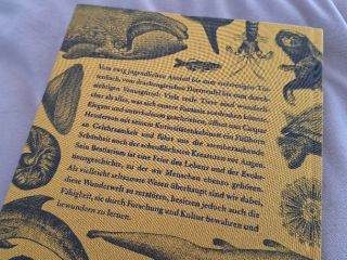 Die Aufmachung des Buches erinnert aber noch an die alten Schriften. Schon beim Anfassen merkt man, dass hier etwas anders ist: Der Stoffbezug des Buches sticht sofort hervor. Die Illustrationen von Pauline Altmann und Judith Schalansky lassen das Ganze etwas wie ein historisches Kompendium aussehen. Und Autor Caspar Henderson spart nicht mit Informationen: Die Faktendichte im Text ist hoch. Man muss beim Lesen mitdenken und wirklich: Ich kenne Leute, die solche Texte als “leichte Gutenacht-Lektüre” lesen.